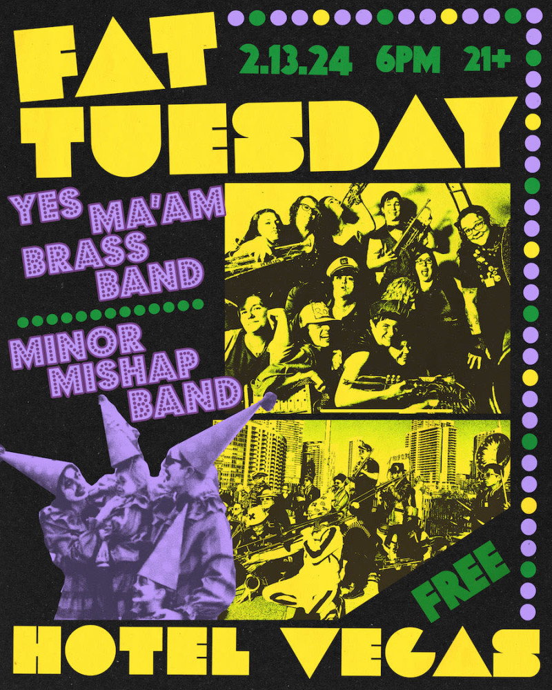 Source : allevents.inFAT TUESDAY: Yes Ma’am Brass Band & Minor Mishap Marching Band in